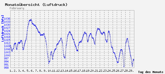 Schnitt: 1013.05 hPa; Min: 988.9 hPa; Max: 1035.4 hPa