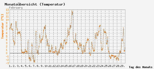 Schnitt: 2.726 °C; Min: -2.7 °C; Max: 12.7 °C