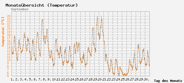 Schnitt: 12.089 °C; Min: 5 °C; Max: 23.8 °C