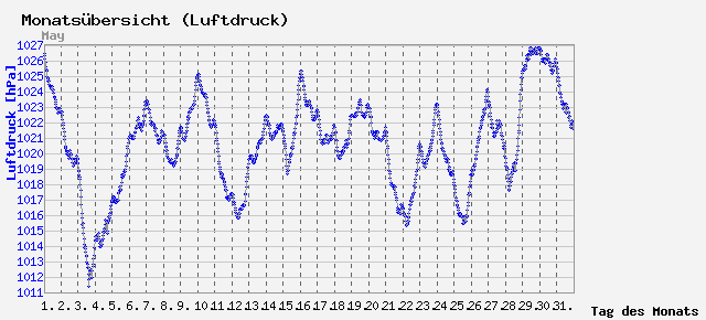 Schnitt: 1020.65 hPa; Min: 1011.4 hPa; Max: 1026.8 hPa