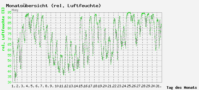 Die letzte Spalte zeigt die Qualität der Funkverbindung zu den Außensensoren an: "?" deutet Schwierigkeiten bei der Datenübertragung an. Die Daten wurden aber vollständig übertragen! "!" zeigt an, dass mindestens ein Datensatz nicht übertragen wurde und in die Mittelung nicht einbezogen werden konnte (D.h. von mind. einer halben Stunde fehlen alle Werte !).