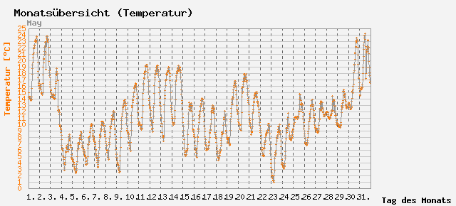 Schnitt: 11.361 °C; Min: 0.9 °C; Max: 24.2 °C
