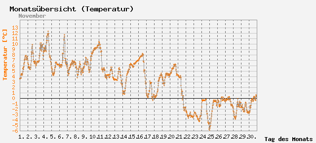 Schnitt: 3.254 °C; Min: -5.9 °C; Max: 12.3 °C