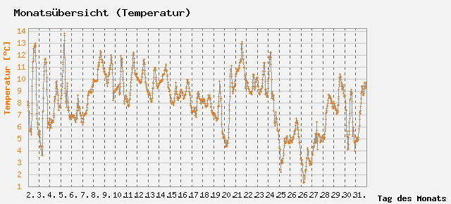 Schnitt: 8.048 °C; Min: 1.3 °C; Max: 13.8 °C