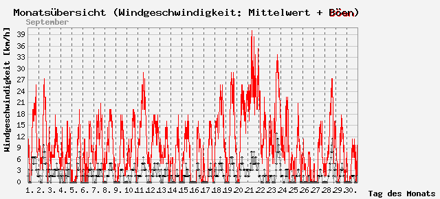 "!" zeigt an, dass mindestens ein Datensatz nicht übertragen wurde und in die Mittelung nicht einbezogen werden konnte (D.h. von mind. einer halben Stunde fehlen alle Werte !).