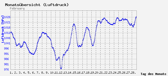 Schnitt: 1007.58 hPa; Min: 976.6 hPa; Max: 1026.2 hPa